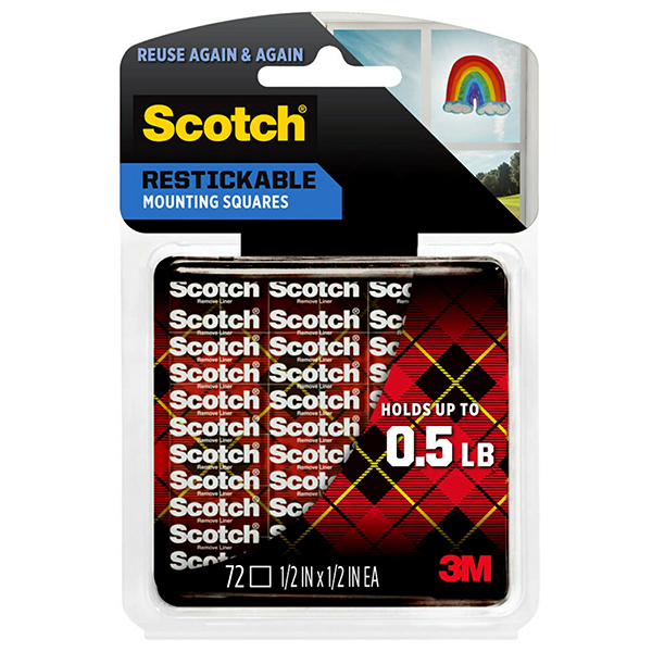 Scotch restickable mini tabs are pre-cut squares of clear, reusable and removable adhesive. Ideal for mounting photos, posters, artwork or papers on walls, office cabinets, refrigerators, windows, etc. Photo safe.