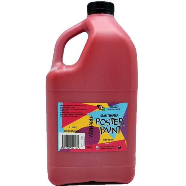 5 STAR TEMPERA POSTER PAINT WASHABLE BOTTLE 2L CRIMSON RED