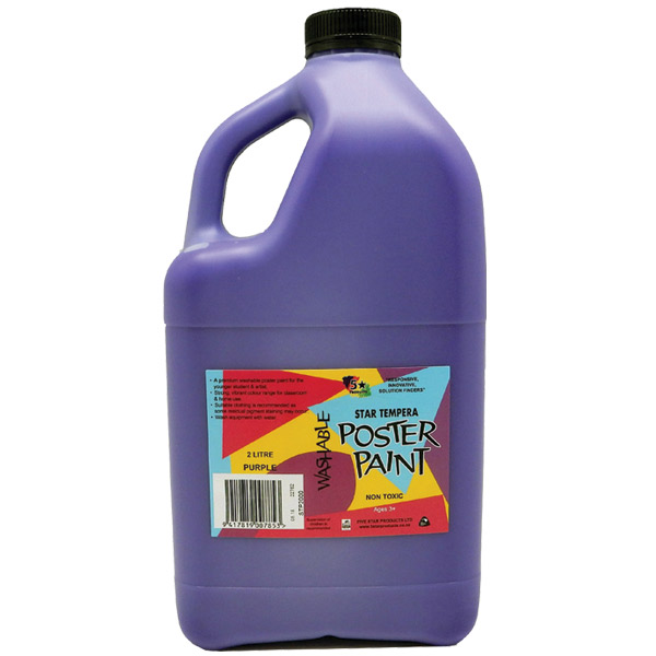 5 STAR TEMPERA POSTER PAINT WASHABLE BOTTLE 2L PURPLE