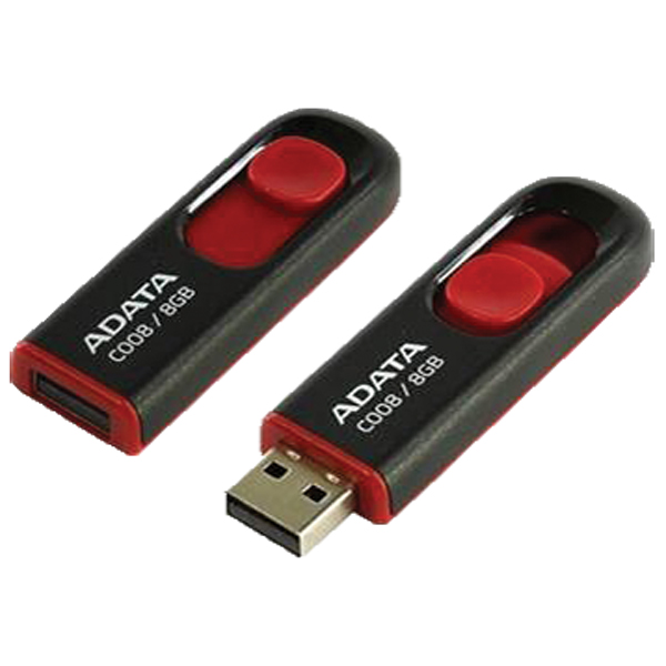 ADATA C008 FLASH DRIVE USB 2.0 RETRACTABLE 16GB BLACK/ RED