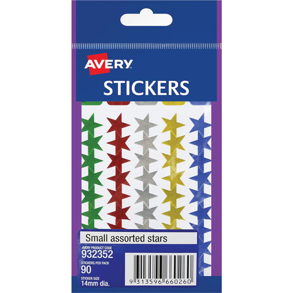 AVERY 932352 STAR STICKERS 14MM ASSORTED PACK 90