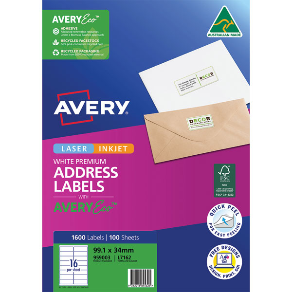 Customise your labels with our free and easy-to-use template software; Avery Design and Print - available at averyproducts.com.au/print