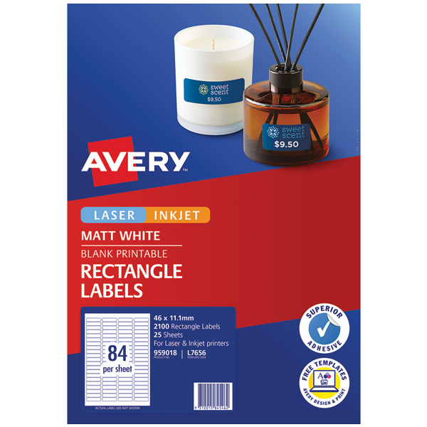 AVERY 959018 L7656 LASER LABELS 46 X 11.1MM 84UP PACK 25