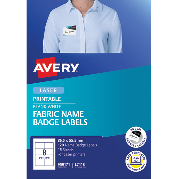 AVERY 980040 L7427 FABRIC NAME BADGE LABELS 10UP WHITE PACK 15