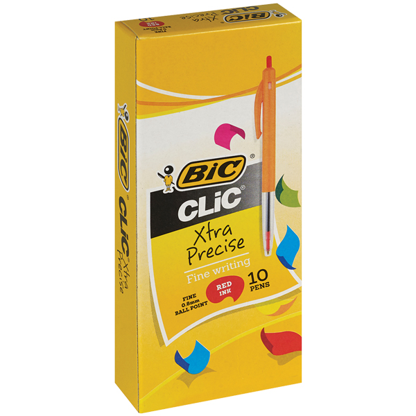 BIC CLIC FINE BALLPOINT PEN RETRACTABLE FINE 0.8MM RED BOX 10