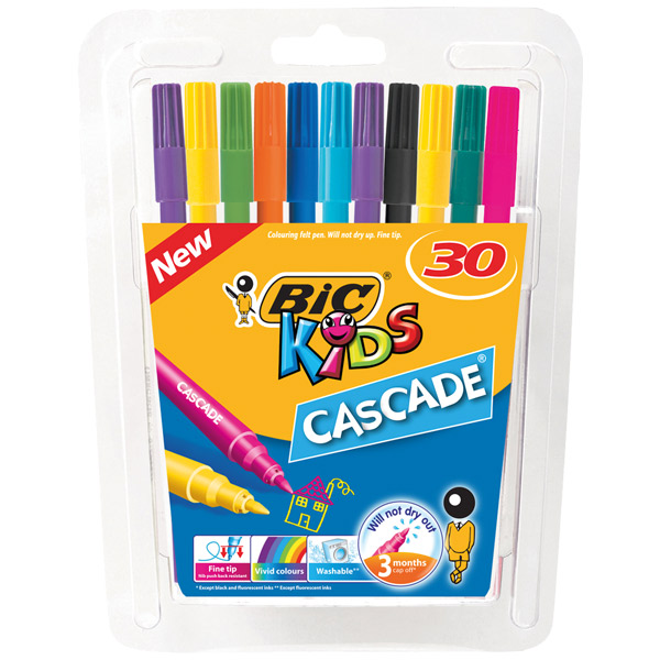BIC KIDS CASCADE FELT TIP PEN MEDIUM ASSORTED PACK 30