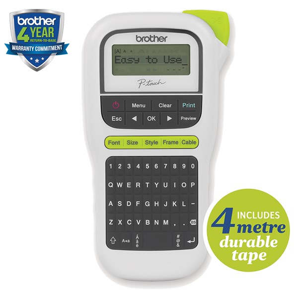 The PTH110 uses durable laminated and fabric labels that sun, germ, water and temperature resistant.