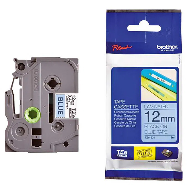 BROTHER TZE-531 LAMINATED LABELLING TAPE 12MM BLACK ON BLUE