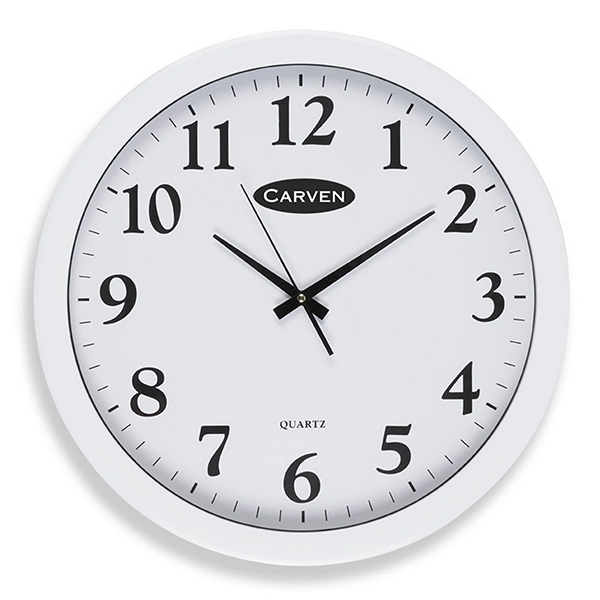 Carven wall clock with a large clock face and clear numbers make it easy to see from a distance