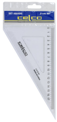 Celco set squares are made from strong durable plastics that are transparently clear