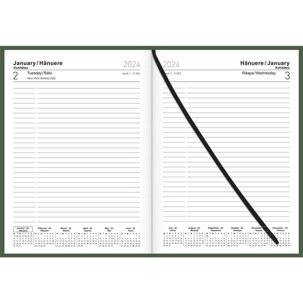 COLLINS DIARY A51 BILINGUAL ENGLISH/TE REO MAORI ASSORTED DESIGN DAY PER PAGE EVEN YEAR