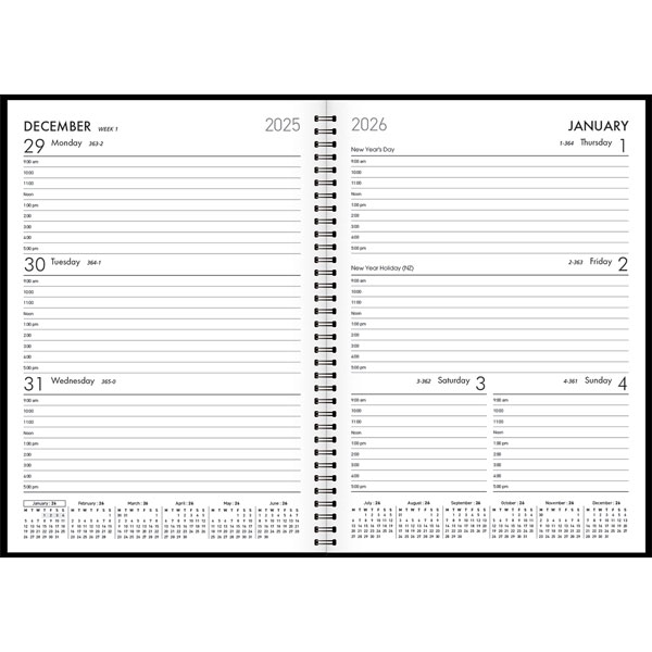 COLLINS DIARY BOSTON A53 BLACK WEEK TO VIEW WIRO EVEN YEAR