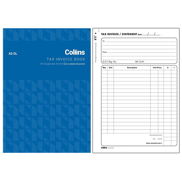 COLLINS TAX INVOICE BOOK 50 TL TRIPLICATE NO CARBON REQUIRED A5 50 LEAF