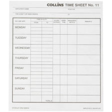 COLLINS WAGE TIMESHEET PAD NO.11 W188 X L220MM 100 LEAF