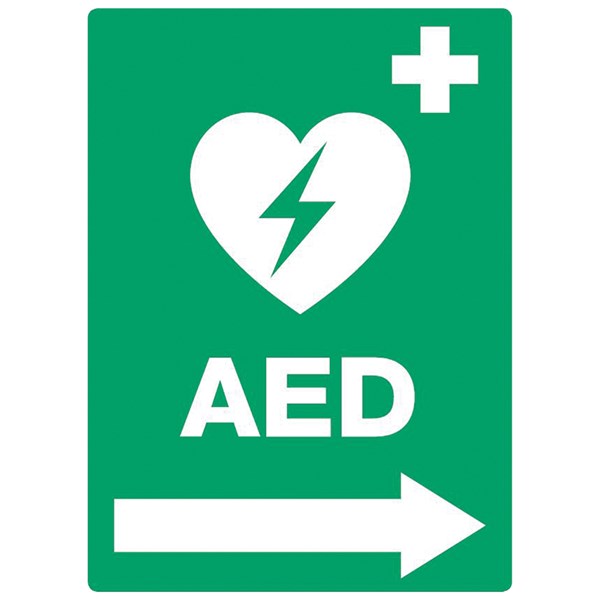 DEFIBRILLATOR AED RIGHT ARROW SIGN 300 X 400MM GREEN