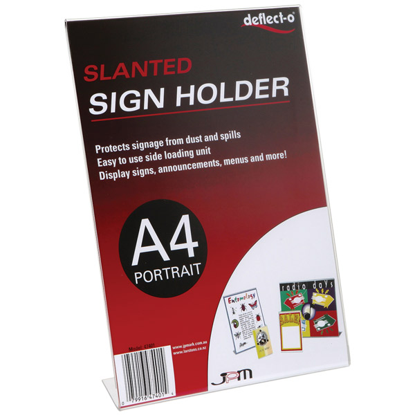 DEFLECTO SIGN HOLDER SLANTED PORTRAIT A4 CLEAR