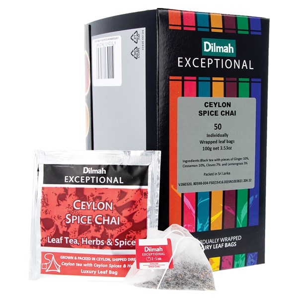 DILMAH EXCEPTIONAL TEA BAGS SPICE CHAI FOIL ENVELOPED BOX 50