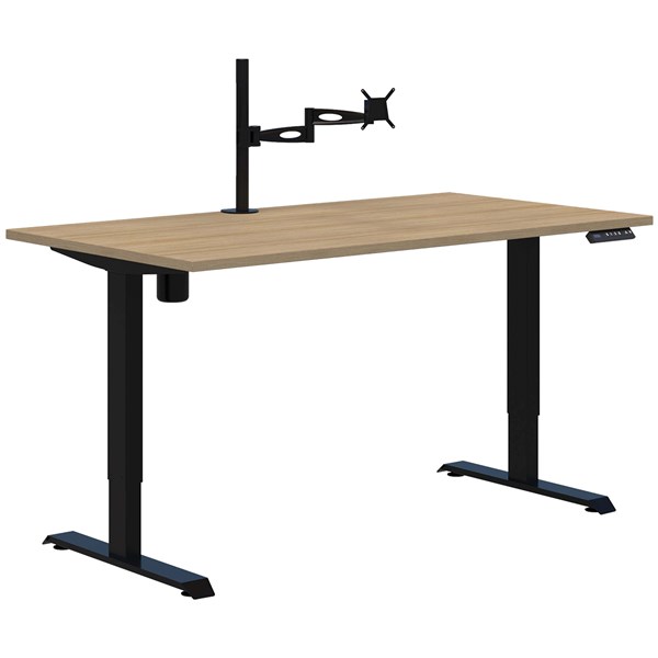 DUO II ELECTRIC DESK W1200 X D700 X H695-1145MM BLACK FRAME CLASSIC OAK WITH METALICON SINGLE MONITOR ARM BLACK