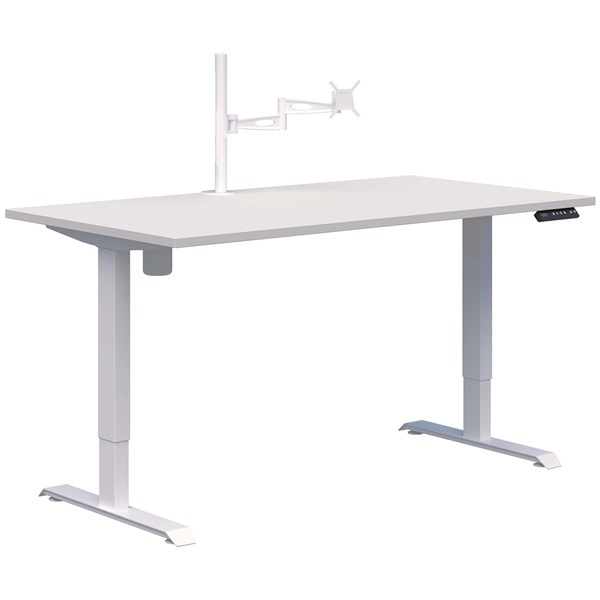 DUO II ELECTRIC DESK W1200 X D700 X H695-1145MM WHITE FRAME SNOWDRIFT WITH METALICON SINGLE MONITOR ARM WHITE