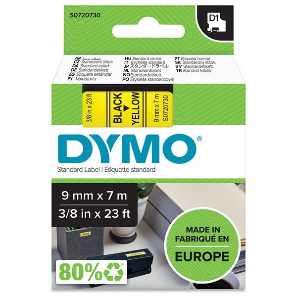 DYMO 40918 D1 LABELLING TAPE 9MM X 7M BLACK ON YELLOW