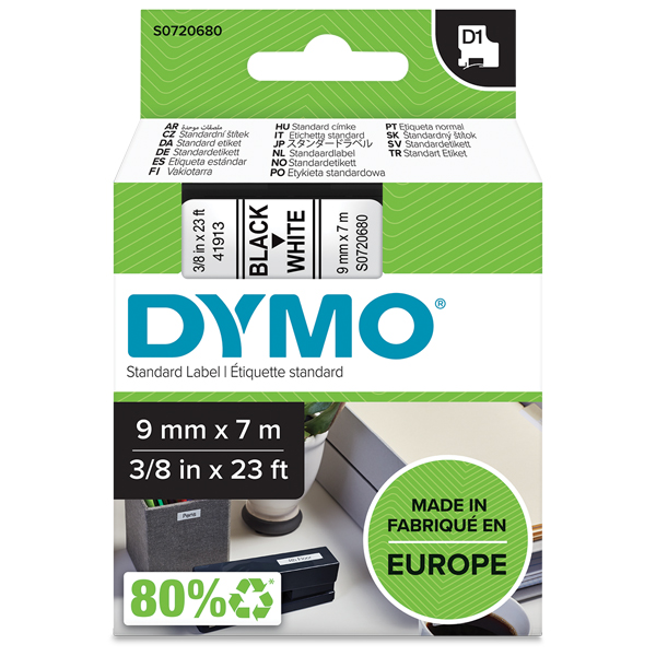 DYMO 41913 D1 LABELLING TAPE 9MM X 7M BLACK ON WHITE