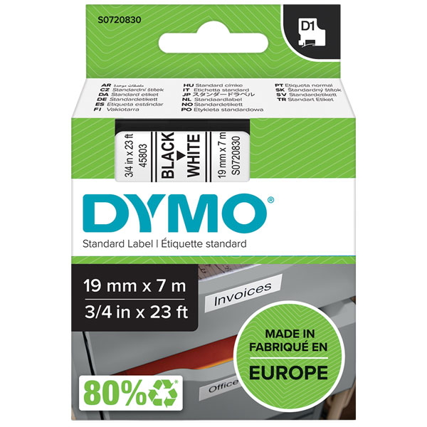 DYMO 45803 D1 LABELLING TAPE 19MM X 7M BLACK ON WHITE