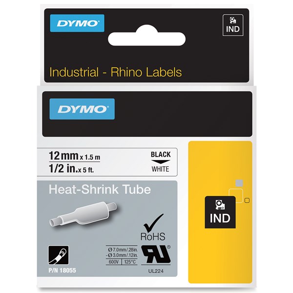 DYMO SD18055 RHINO INDUSTRIAL HEAT SHRINK TUBING 12MM BLACK ON WHITE