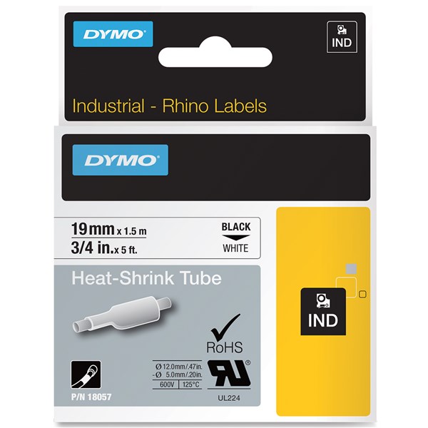 DYMO SD18057 RHINO INDUSTRIAL HEAT SHRINK TUBING 19MM BLACK ON WHITE