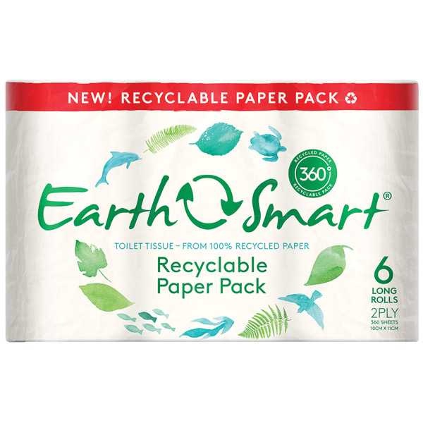 EARTHSMART TOILET TISSUE 2 PLY 360 SHEET PACK 6