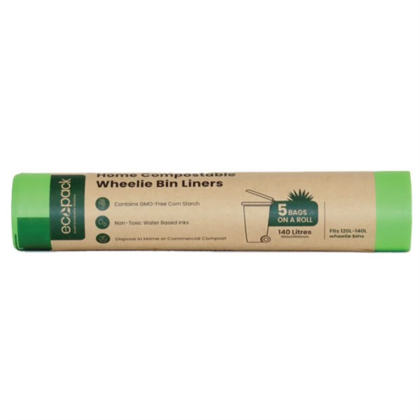 ECOPACK BIN LINERS WHEELIE BIN COMPOSTABLE 140L ROLL 5