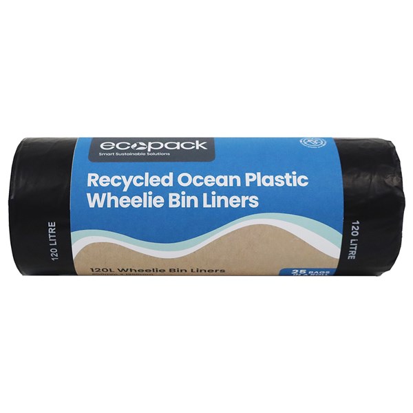 ECOPACK OCEAN PLASTIC WHEELIE BIN LINER BLACK 120L ROLL 25