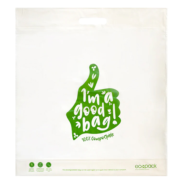 ECOPACK PUNCHED HANDLE BAG COMPOSTABLE LARGE PACK 50