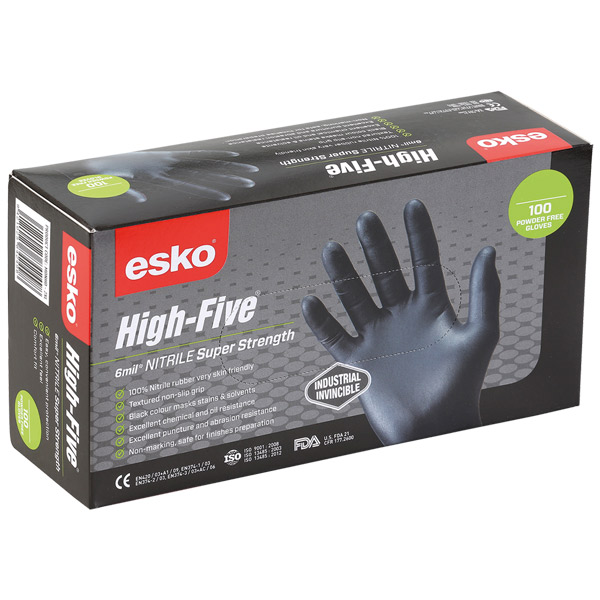ESKO HIGH FIVE DISPOSABLE GLOVE NITRILE SUPER STRENGTH POWDER FREE 3XL BOX 100