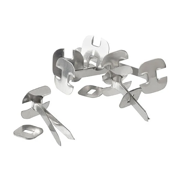 Each has pointed ends and is fitted with a washer to securely hold paper