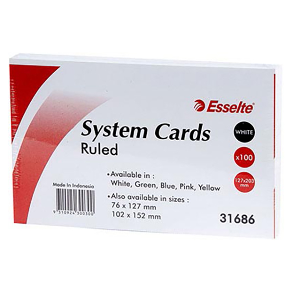 ESSELTE RULED SYSTEM CARDS 76 X 127MM WHITE PACK 100