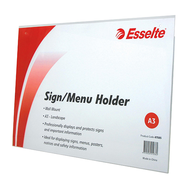 ESSELTE SIGN / MENU HOLDER WALL MOUNT LANDSCAPE A3 CLEAR