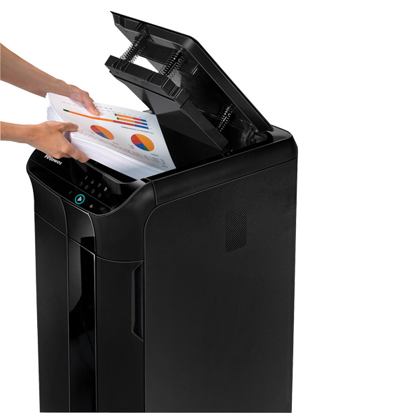 350-sheet automatic and 12-sheet manual shredding capacities (70gsm)