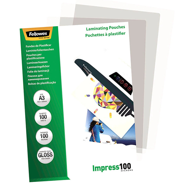 FELLOWES LAMINATING POUCH GLOSS A3 100MIC PACK 100