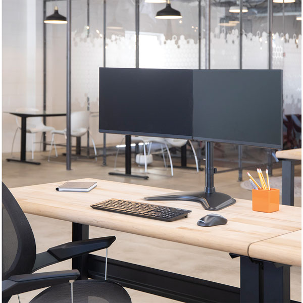 Free-standing design allows dual monitors to be used in spaces that do not allow a clamp or grommet mount