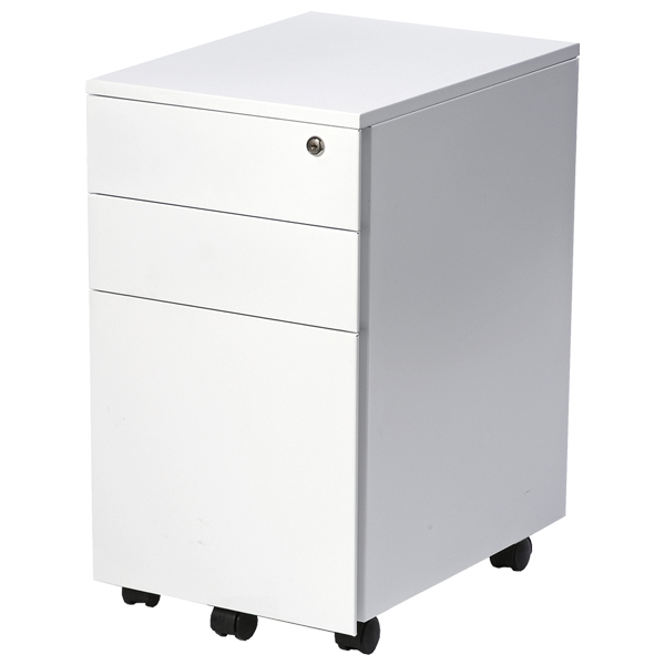 Firstline's lockable slimline mobile is narrow for more under desk room.