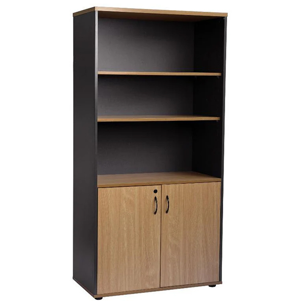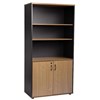 FIRSTLINE CUPBOARD 4 SHELVES WOODEN LOCKABLE W900 X D450 X H1800MM IRONSTONE AND BEECH