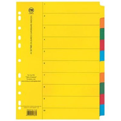 FM CARDBOARD DIVIDER 10 TAB A4 COLOURED