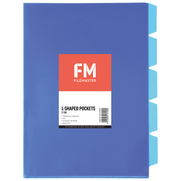 FM L-SHAPED POCKET 5 TAB A4 BLUE PACK 5