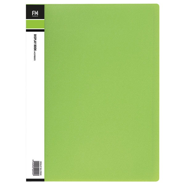 FM VIVID INSERT DISPLAY BOOK 20 POCKET A4 LIME GREEN