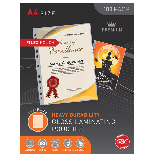 GBC FILEX LAMINATING POUCH 125 MICRON A4 CLEAR PACK 100