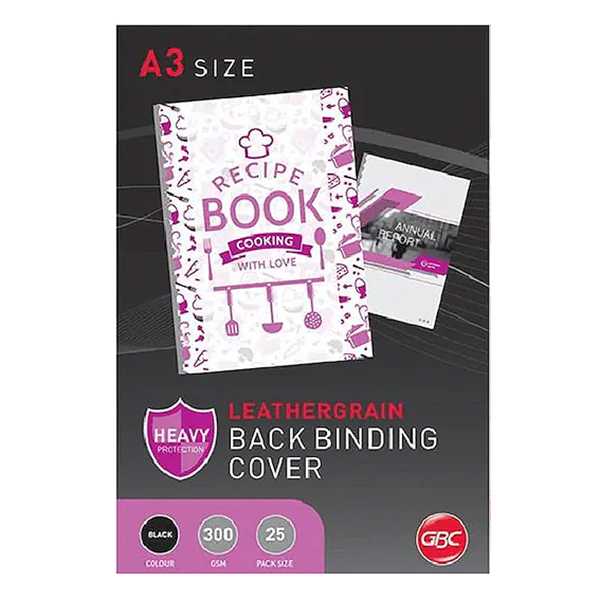 GBC IBICO BINDING COVER LEATHERGRAIN 300GSM A3 BLACK PACK 25