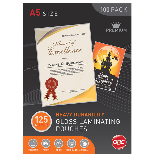 GBC LAMINATING POUCH 125 MICRON A5 CLEAR PACK 100