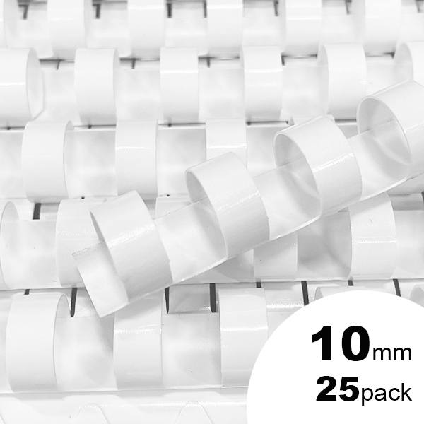 GBC PLASTIC BINDING COMB ROUND 21 LOOP 10MM A4 WHITE PACK 25