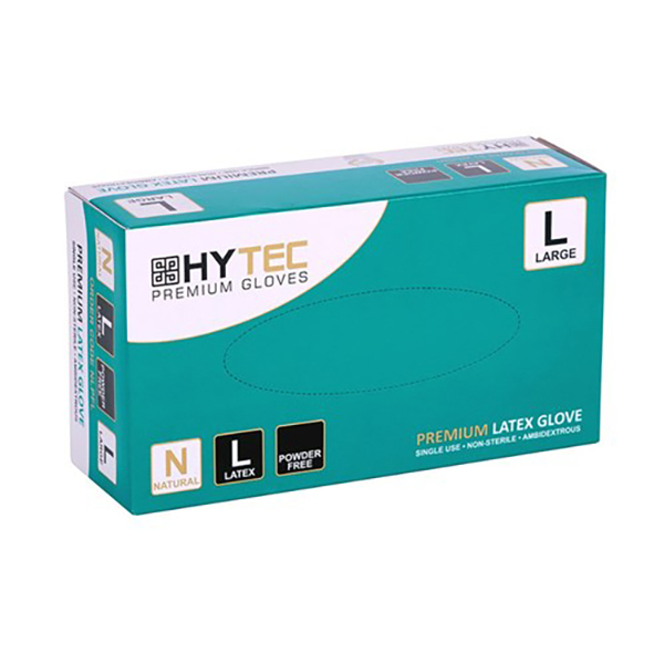 HYTEC DISPOSABLE GLOVES LATEX POWDER FREE CLEAR LARGE BOX 100