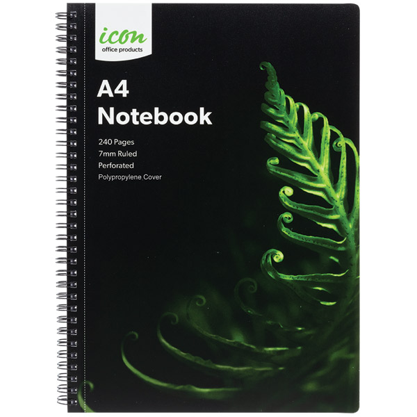 ICON SPIRAL NOTEBOOK A4 POLYPROP COVER BLACK 240 PAGE